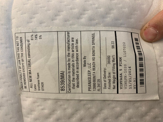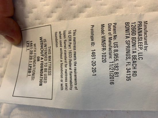 Please take a clear, well-framed photo of the law tag, typically located at the head of your mattress. If there are two tags (one behind the other), be sure to photograph both. If you also purchased a foundation or box spring from Gardner’s, include similar photos of the law tag on that item as well.