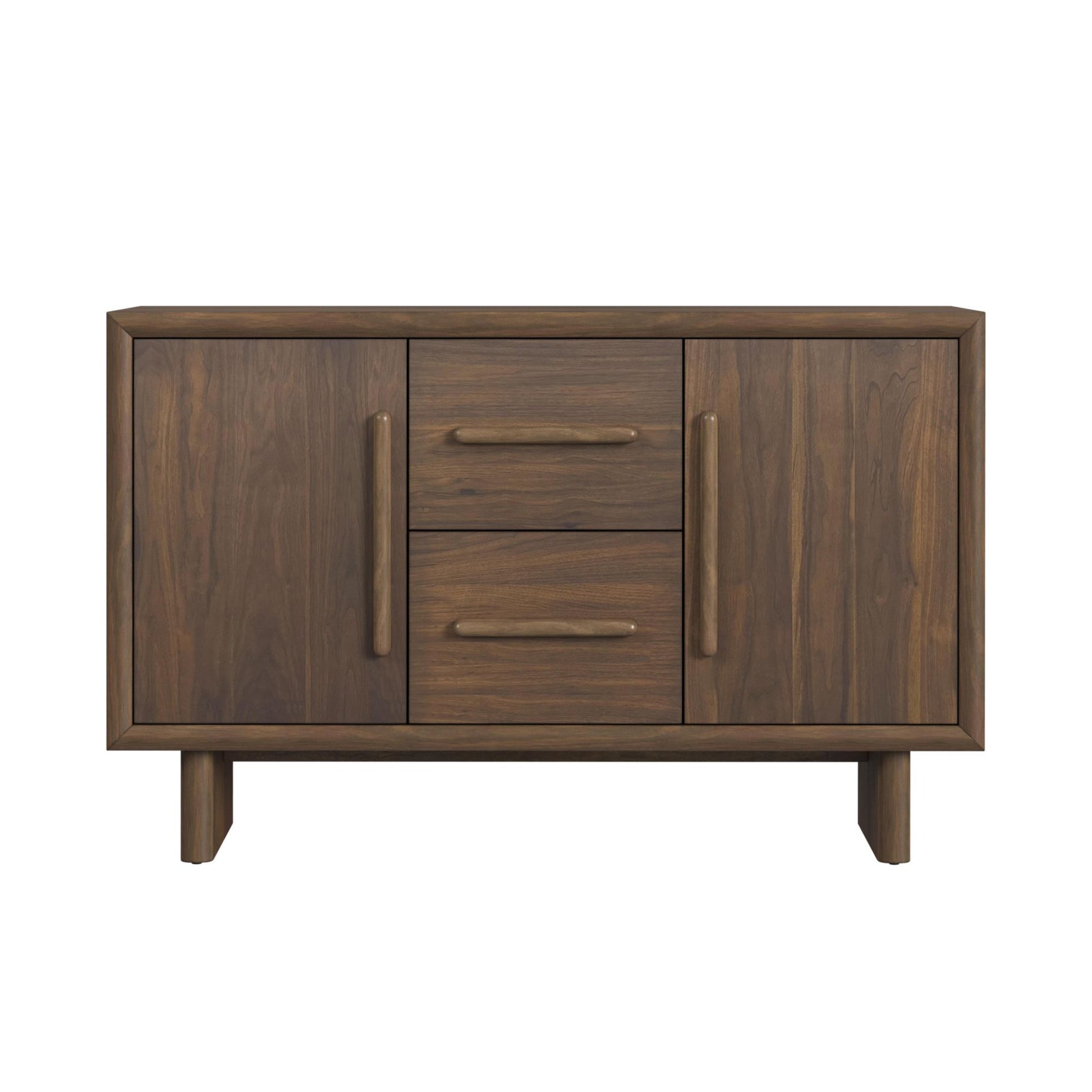 Adorn your dining space with the sophisticated mid-century modern design of the Brisbane Server in Brown. Crafted from solid wood and a high-quality walnut veneer, this server is as durable as it is refined. Spacious drawers offer ample space for storing your dining room essentials, while the aesthetic double pedestal base and minimalist wooden drawer pulls add charming detail. Durable, elegant, and thoughtfully designed, the Brisbane Server in Brown elevates your dining space with its ageless beauty and refined craftsmanship.