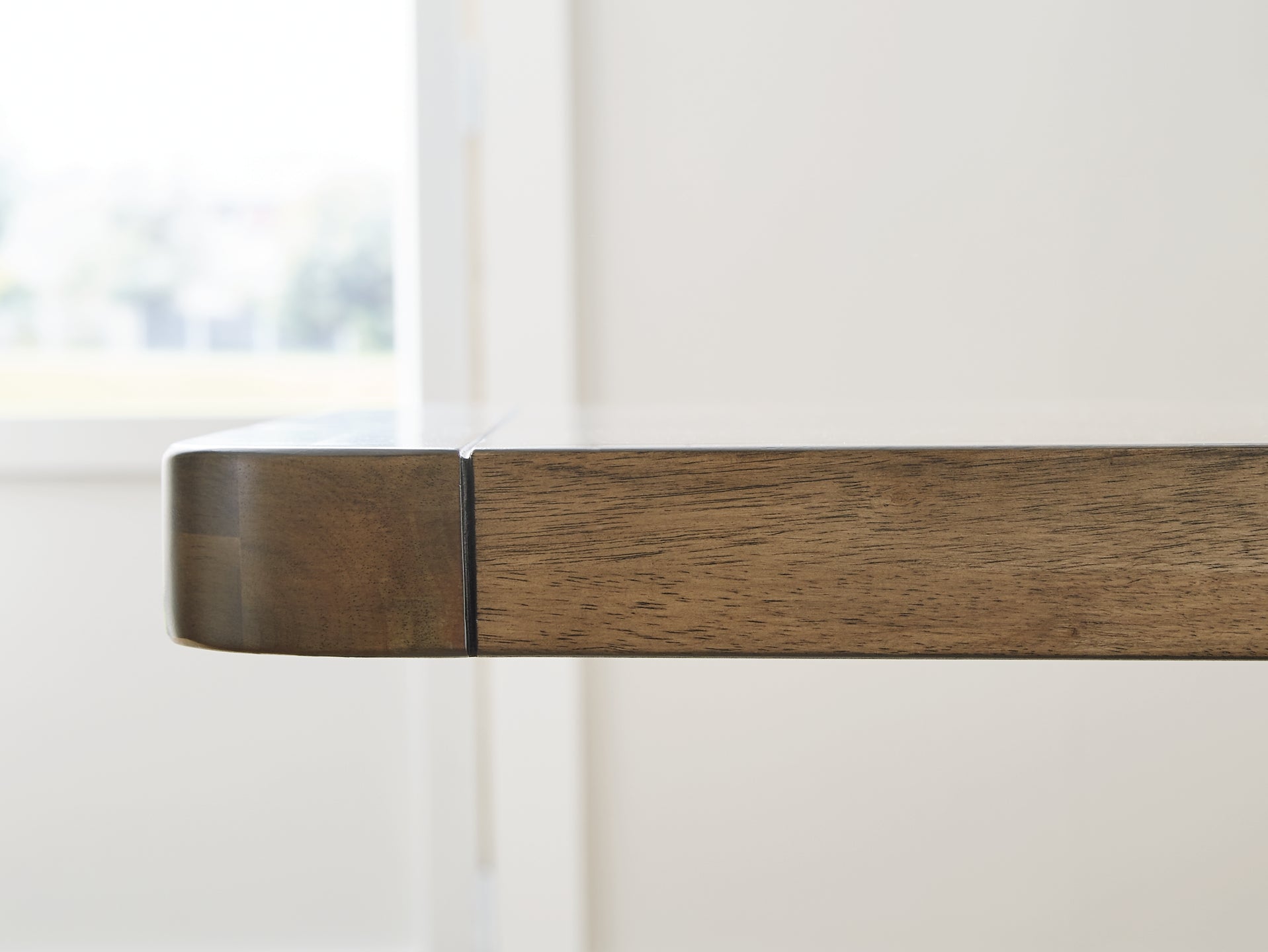 This dining extension table sits comfortably at the intersection of modern lodge and farmhouse aesthetics. Your warm and welcoming disposition is reflected in its charming architectural elements and light brown glazed finish. Even with its poise, it remains practical. A smooth extension feature serves up plenty of space for family and guests, defining your dining room with reliable function and style.