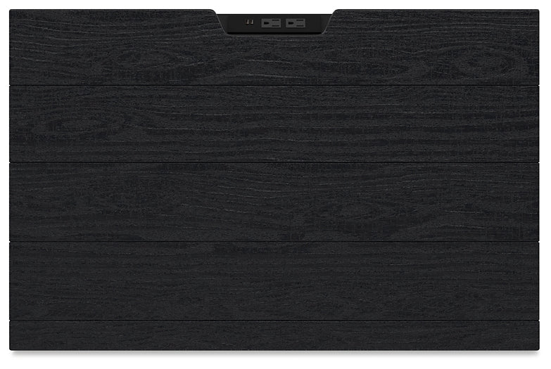 | Details | B768B5: Includes headboard, footboard and rails, Made with pine solids, veneers and engineered wood substrate, Textured black wood stain with waxy topcoat, Extra wide rails for a bench-like wrap around, Foundation/box spring required, sold separately, Mattress available, sold separately, Assembly required, B768B1: Includes dresser and mirror, Made with pine solids, veneers and engineered wood substrate, Textured black wood stain with waxy topcoat, Hardware-less design, 6 drawers with fully finished interiors, dovetail construction and ball-bearing side glides (top drawers felt lined), Mirror attaches to back of dresser, B768-92: Made with pine solids, veneers and engineered wood substrate, Textured black wood stain with waxy topcoat, Hardware-less design, 2 drawers with fully finished interiors, dovetail construction and ball-bearing side glides, 110V power supply with dual USB charging ports, Power cord included; UL Listed, | |