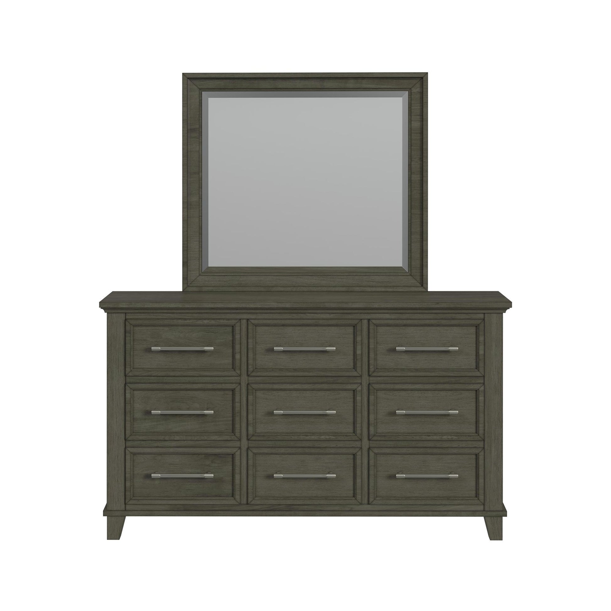 The Canterbury Dresser and Mirror Set exudes timeless elegance with its sleek smooth finish on rich veneer, blending modern and classic design. The ball bearing drawer glides ensure smooth, quiet operation, while refined brushed nickel handles add sophistication. Stylish inset panel fronts and sophisticated beveled edges enhance visual appeal, making this set a stunning focal point in any bedroom. The graceful beveled mirror completes the ensemble, adding charm and functionality. The Canterbury Dresser and Mirror Set perfectly combines functionality and elegance, bringing style and luxury to your living space.