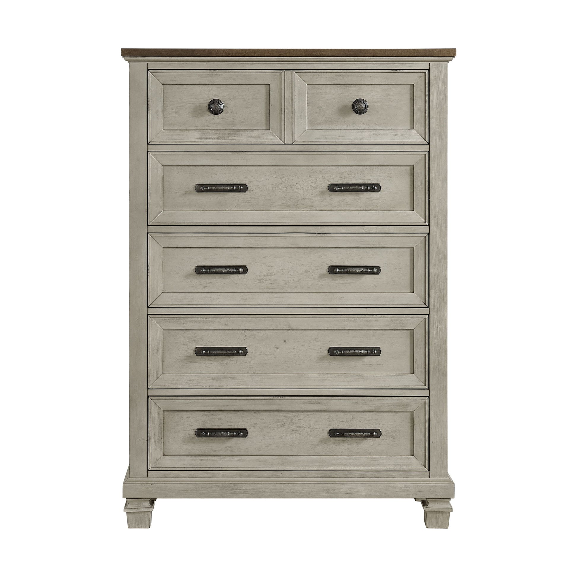 Farmington - 5 Drawer Chest - Medium Brown / Washed Stone