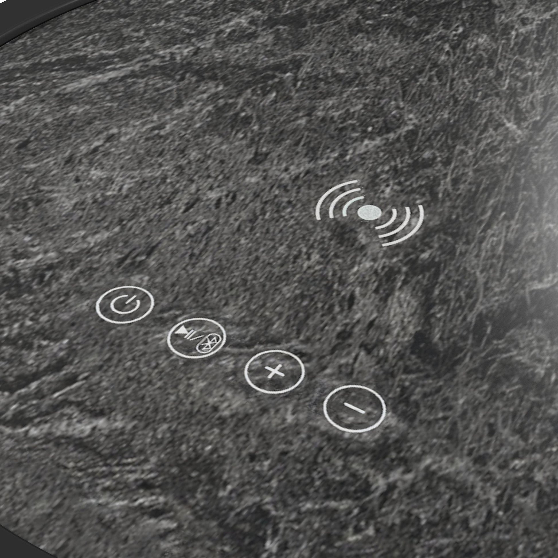 Accent your home's décor with the modern design of the Halo Round Smart End Table, a sleek expression of style. The touchscreen interface and wireless charging functionality on the elegant sintered stone tabletop add practical convenience without sacrificing aesthetics, while the Bluetooth speaker allows for effortless device pairing. Angled, tapered feet add artistic flair and provide a stable foundation. Enhancing its versatility, the streamlined black finish makes this piece easy to pair with various color palettes and existing décor. The Halo Round Smart End Table is a perfectly modern blend of both style and convenience.