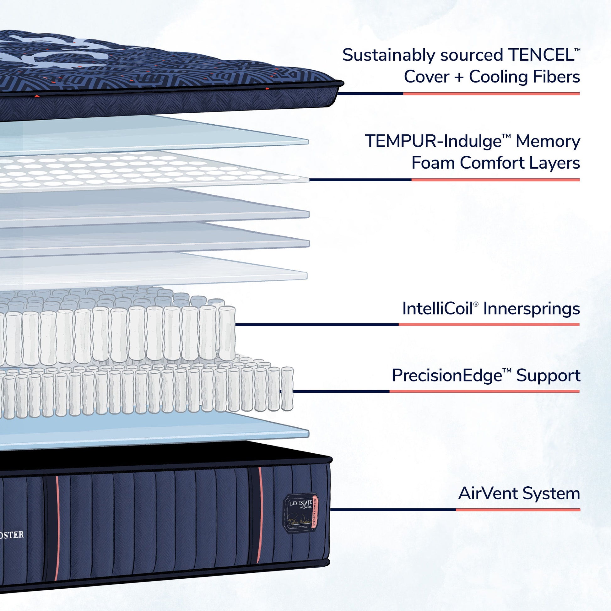 The Stearns & Foster Lux Estate Collection provides an elevated level of comfort and support, with the added benefit of features to help keep you cool, all night long.
