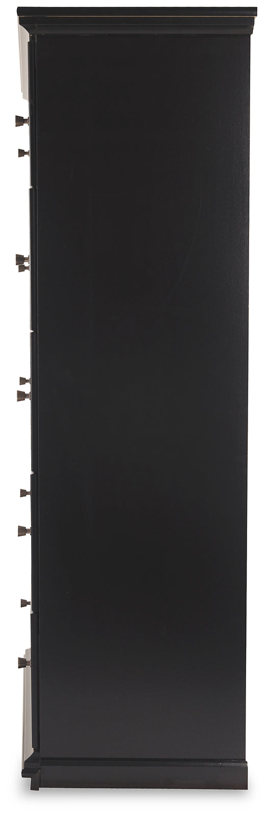 | Details | Made of wood and engineered wood (MDF/particleboard), Antiqued black finish, Rubbed dark metal hardware, 5 smooth-gliding drawers, Includes tipover restraint device, Small Space Solution, Safety is a top priority, clothing storage units are designed to meet the most current standard for stability, ASTM F 2057 (ASTM International), Drawers extend out to accommodate maximum access to drawer interior while maintaining safety | |