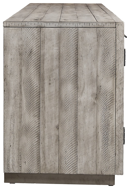 Balancing chic flair with a relaxed sensibility, this extra-large TV stand strikes just the right tone for rustic sophistication. Beautifully clean lines are subtly enhanced with relaxed distressing and saw marks for authentic barn wood character. You're sure to love the convenient open style for easy access to media equipment and accommodating pretty home accents.