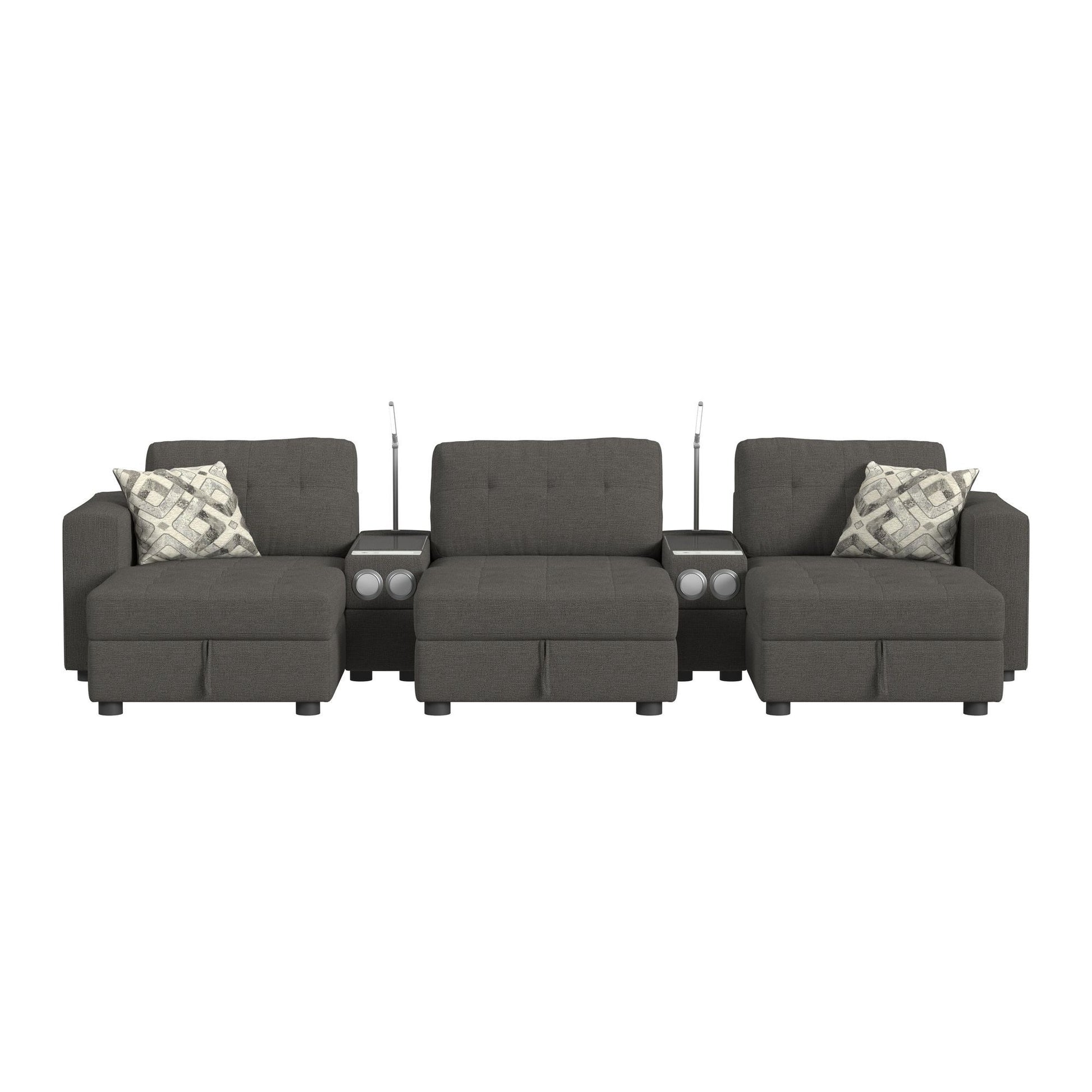 Options One - 8 Piece Living Room Set Sectional With Media Console And 3 Ottomans - Ash
