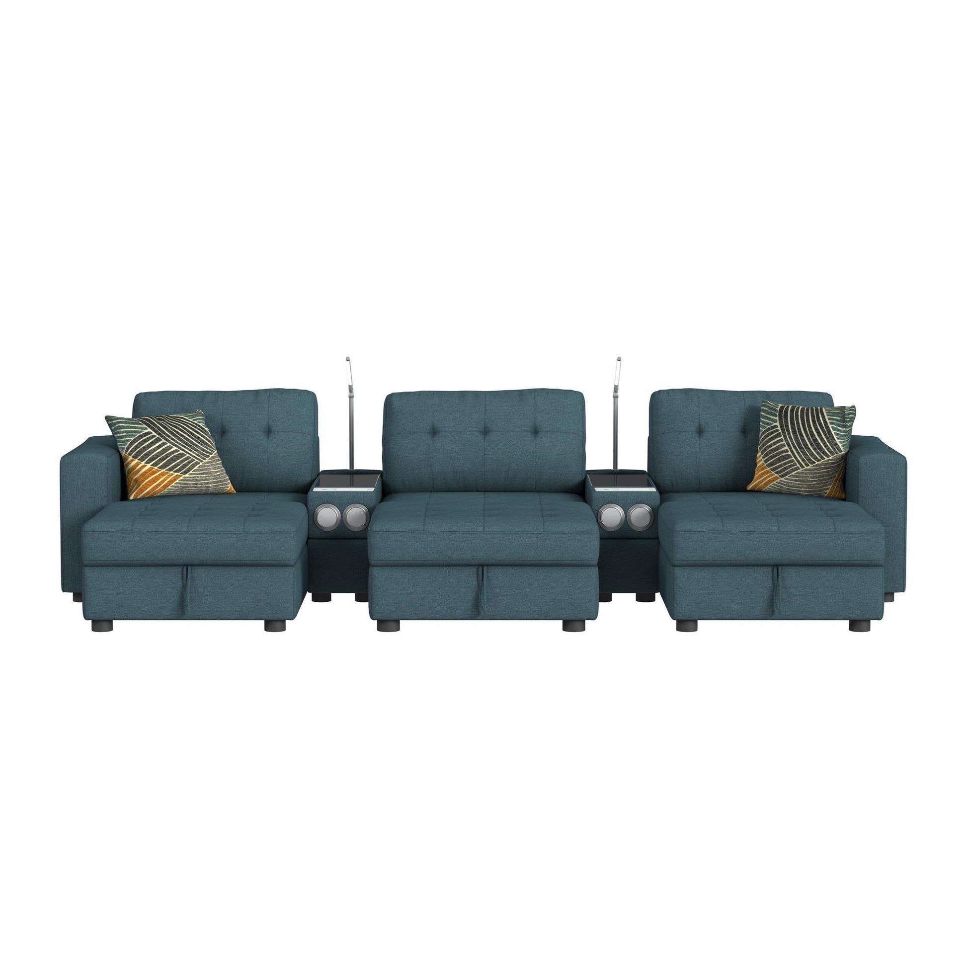 Options One - 8 Piece Living Room Set Sectional With Media Console And 3 Ottomans - Teal