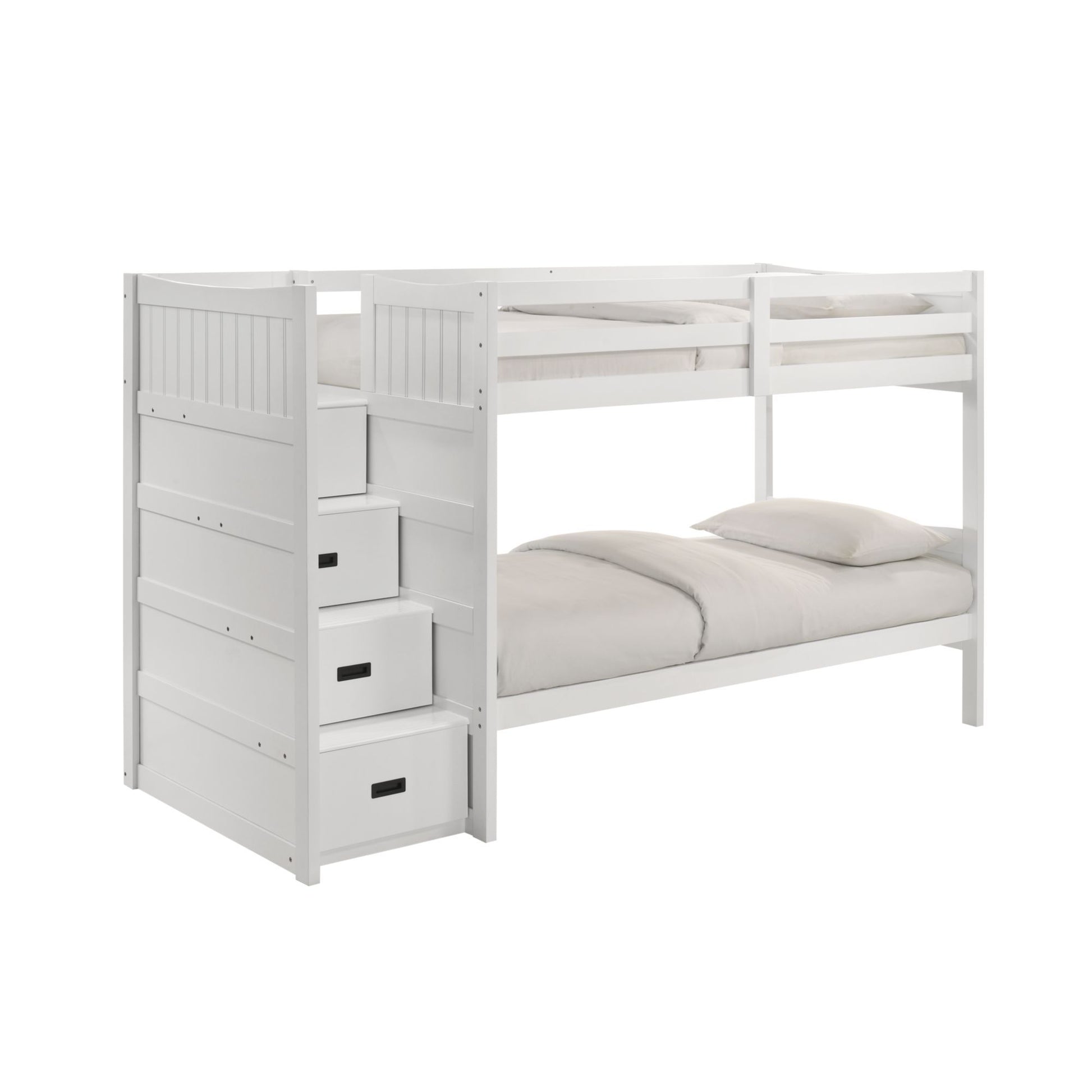 Sami - Twin Over Twin Step Bunk With Left Headboard - White