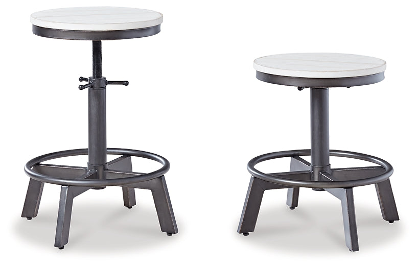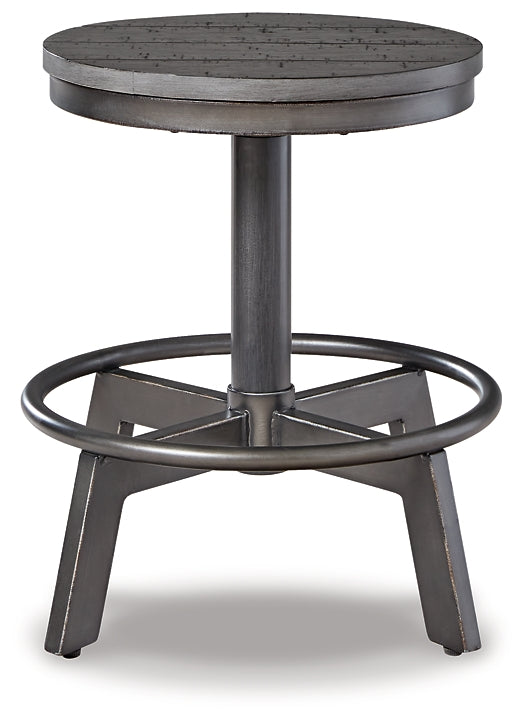 Make your home the hub for cool vibes with this stool. Two-tone finish scheme of distressed warm brown and aged gunmetal is full of urban industrial swagger. Adjustable height is accommodating for you and your guests. Add it behind your sofa with a long counter table for a dapper eating or working space.